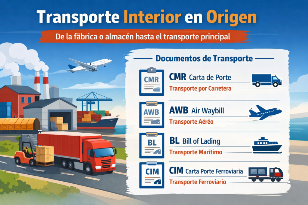 El proceso logístico comienza con el transporte interior en el país de origen, es decir, el traslado de la mercancía desde la fábrica o almacén del exportador hasta el punto donde se realizará el transporte internacional.